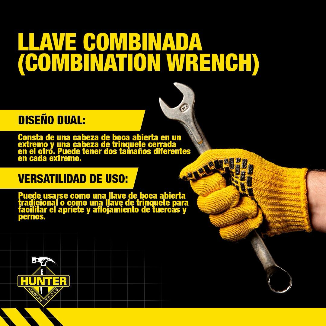- Design duplo: A chave combinada tem um design duplo com uma cabeça de boca aberta em uma extremidade e uma cabeça de catraca fechada na outra. Pode ter dois tamanhos diferentes em cada extremidade.